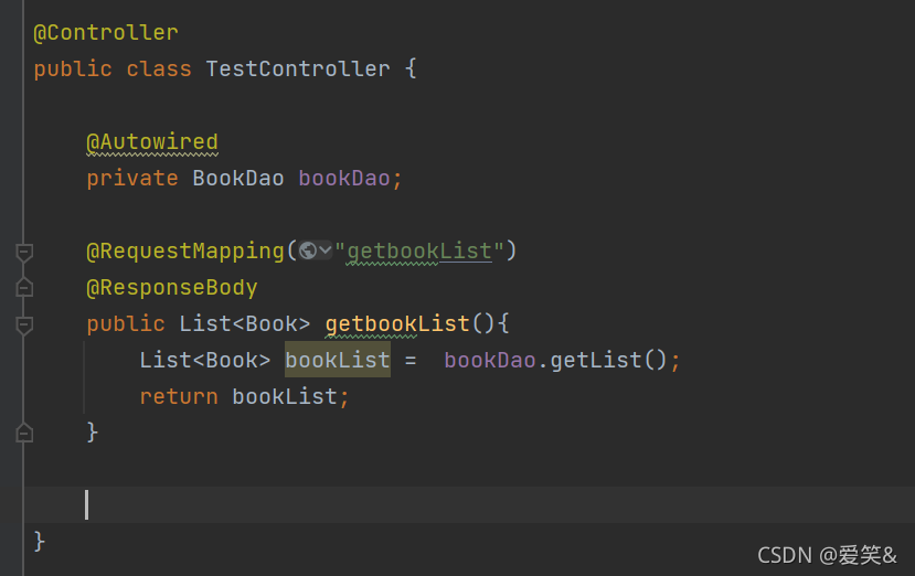getbookList是TestController中RequestMapping中自定義的