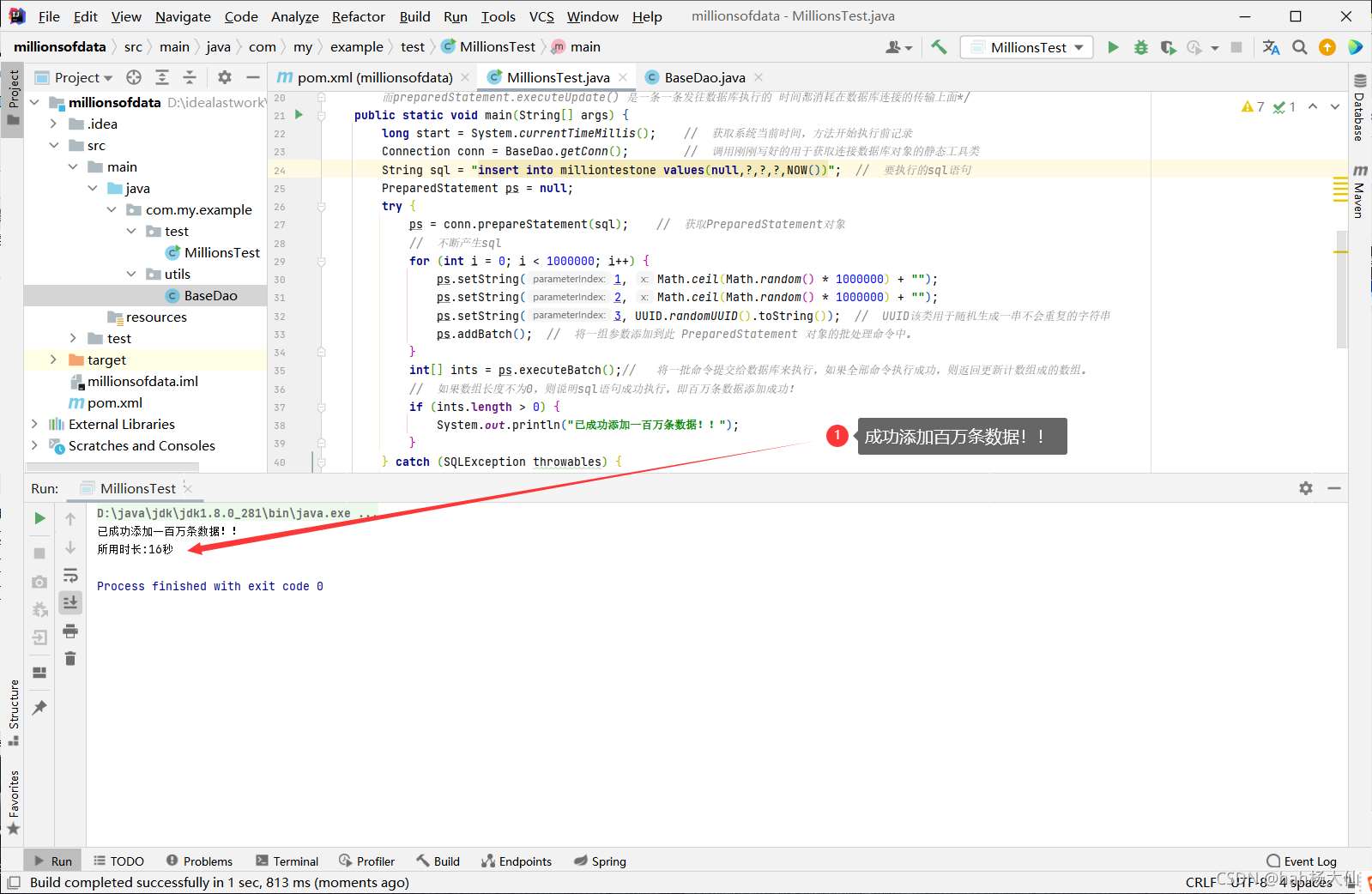 System.out.println("已成功添加一百萬條數(shù)據(jù)?。?);