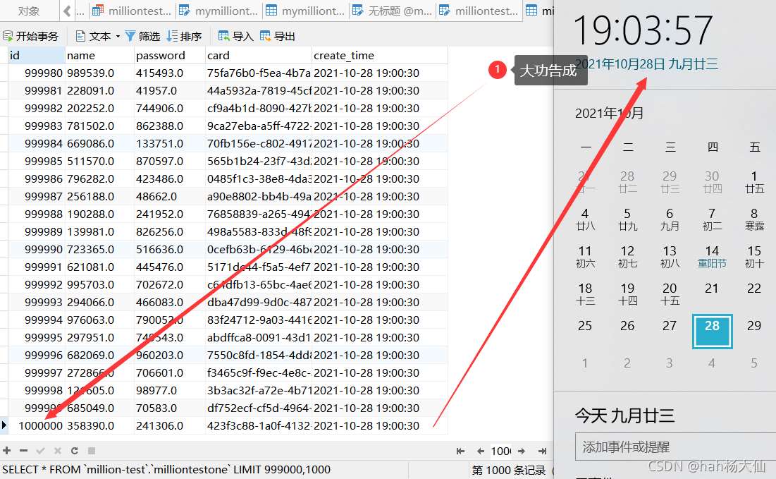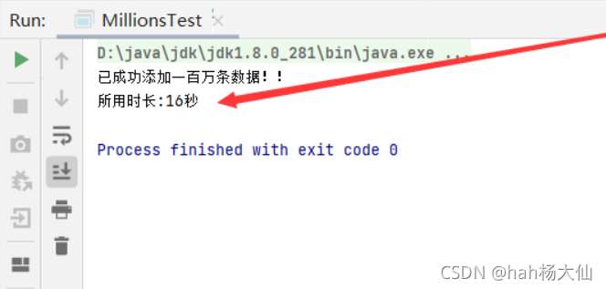 // 如果數(shù)組長度不為0,則說明sql語句成功執(zhí)行,即百萬條數(shù)據(jù)添加成功!
