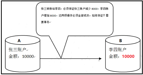 比如:銀行賬戶轉(zhuǎn)賬,從A賬戶向B賬戶轉(zhuǎn)賬10000,需要執(zhí)行兩條update語(yǔ)句: