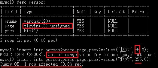 ① 整型數(shù)據(jù)類型聲明時的參數(shù)問題