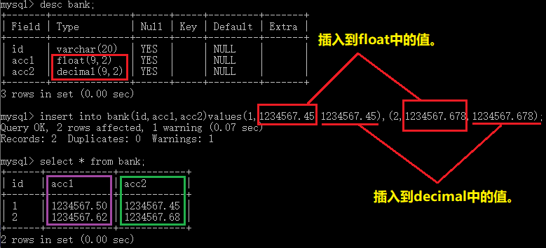 ③ zerofill參數(shù)必須和M參數(shù)配合使用"才有意義"。
