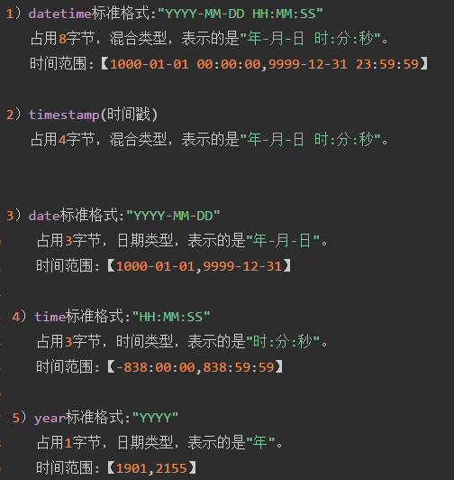 1)日期類型:指的是年、月、日,類似于2019-11-16(2019年11月16號)