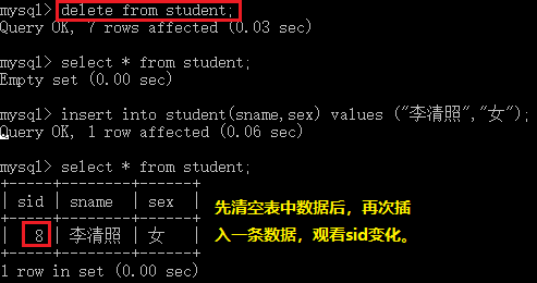 insert into student(sname) values ("王五");