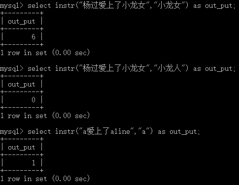6)instr(str,要查找的子串) :返回子串第一次出現(xiàn)的索引,如果找不到,返回0; 當(dāng)查找的子串存在于字符串中:返回該子串在字符串中【第一次】出現(xiàn)的索引。當(dāng)查找的子串不在字符串中:返回0。