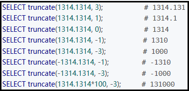 4)truncate(x,D) :截斷; truncate函數(shù),也是在excel,python中均存在,含義基本都是一致的。但是這個函數(shù)理解起來有點難,我這里帶著大家好好學(xué)習(xí)一下。