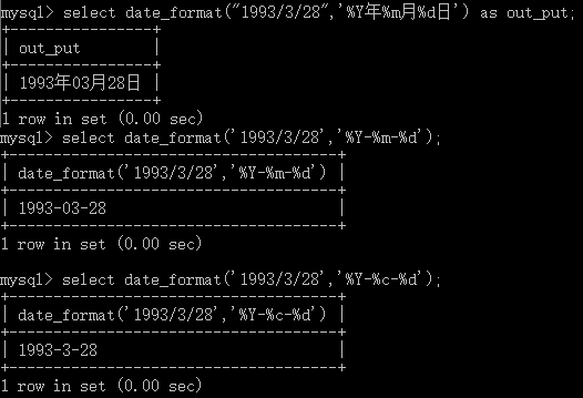 8)date_format() :將日期轉(zhuǎn)換成日期字符串; %Y-%m-%d返回的月份是01,02…這樣的格式。%Y-%c-%d返回的月份是1,2…這樣的格式。