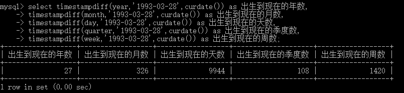 12)timestampdiff(unit,start_date,end_date) :計算兩個時間返回的年/月/天數(shù);