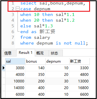 "什么是單行函數(shù):":作用于表中的每一行記錄,一條記錄出來一個結(jié)果;