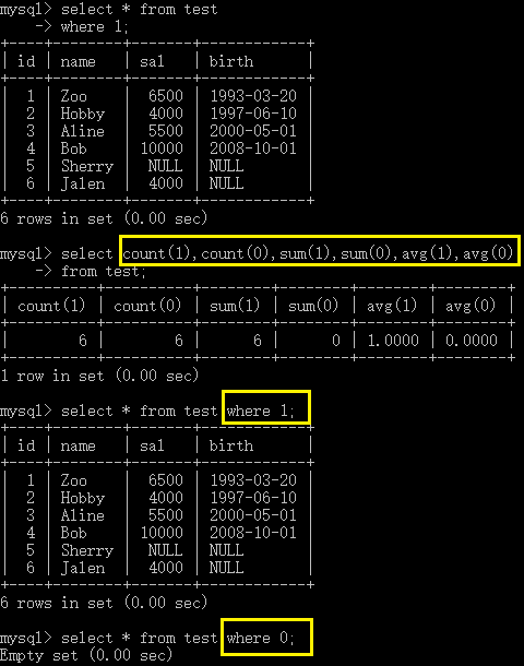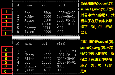 無論是sum(1),sum(0),count(1),count(0),avg(1),avg(0),原理都是一樣的,相當(dāng)于在原表中新增一列。