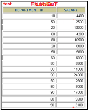對上述原始數(shù)據(jù),按照DEPARTMENT_ID(員工id)分組統(tǒng)計SALARY(薪水)的平均值。