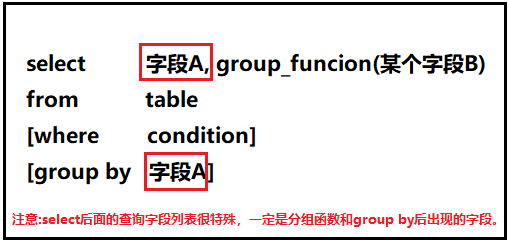group by是用于分組查詢的關(guān)鍵字,一般是配合sum(),avg(),count(),max(),min()聚合函數(shù)使用的。也就是說SQL語句中只要有group by,那么在select后面的展示字段中一般會有聚合函數(shù)(5個聚合函數(shù))中的一個或多個函數(shù)出現(xiàn)。觀察上圖,有一點你需要記住,你用表中的字段A進行分組后,一般就需要對表中的其它字段,使用聚合函數(shù),這樣意義更大,而不是還對字段A使用聚合函數(shù),沒啥太大意義。