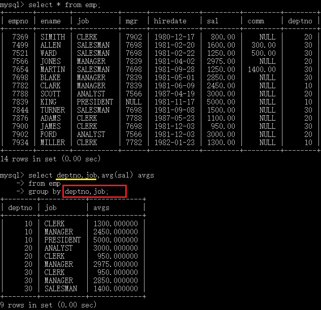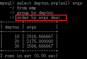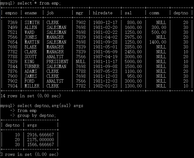 案例 :按照部門編號deptno分組,統(tǒng)計每個部門的平均工資。
