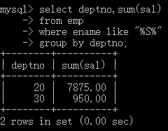 習(xí)題一:查詢姓名中包含S字符的,每個部門的工資之和。