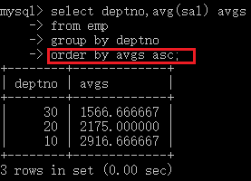習(xí)題二:查詢每個部門的員工的平均工資,按照平均工資升序。