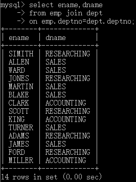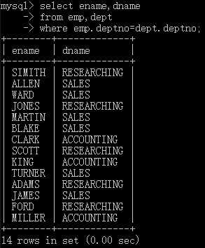 可以看到,笛卡爾積最終產(chǎn)生的記錄數(shù)是兩張表中各自數(shù)據(jù)的乘積,當(dāng)沒有使用連接查詢的時候,如果兩張表中數(shù)據(jù)特別大的時候,將會撐爆你的內(nèi)存,那是很可怕的,因此我們要學(xué)會使用連接查詢。