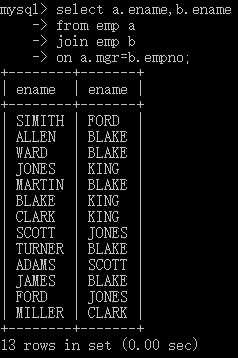 習(xí)題:找出每個員工的上級領(lǐng)導(dǎo),要求顯示員工名和對應(yīng)的領(lǐng)導(dǎo)名。