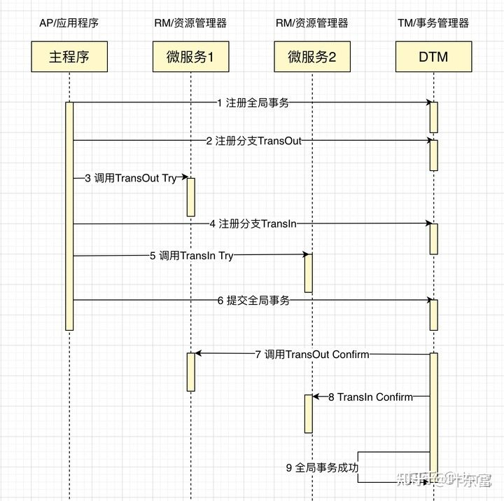 Try階段:嘗試執(zhí)行,完成所有業(yè)務檢查(一致性), 預留必須業(yè)務資源(準隔離性)Confirm階段:確認執(zhí)行真正執(zhí)行業(yè)務,不作任何業(yè)務檢查,只使用 Try 階段預留的業(yè)務資源,Confirm操作要求具備冪等設計,Confirm失敗后需要進行重試。Cancel階段:取消執(zhí)行,釋放 Try 階段預留的業(yè)務資源。Cancel階段的異常和Confirm階段異常處理方案基本上一致,要求滿足冪等設計。