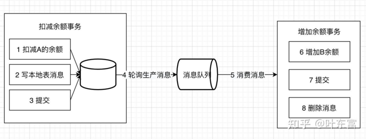 我們拿轉(zhuǎn)賬作為例子,A需要轉(zhuǎn)100元給B,那么需要給A的余額-100元,給B的余額+100元,整個轉(zhuǎn)賬要保證,A-100和B+100同時成功,或者同時失敗??纯丛诟鞣N場景下,是如何解決這個問題的。