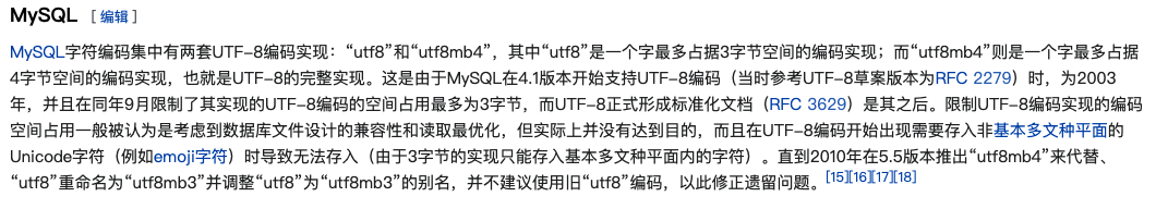 從上圖我們可以看到,MySQL數(shù)據(jù)庫有兩套 UTF-8 編碼實現(xiàn)。