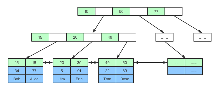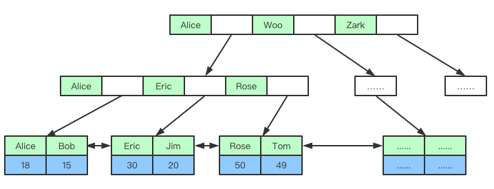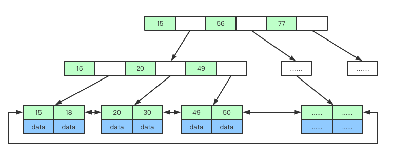 - 葉子結(jié)點(diǎn)用指針鏈接,提高區(qū)間訪問的性能(可以提升范圍查找的效率)