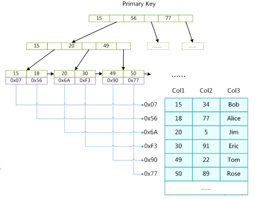- 葉子結(jié)點(diǎn)包含所有索引字段