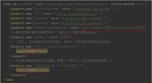 為了避免dead connections,socket必須要有超時(shí)配置。socket timeout可以通過(guò)JDBC設(shè)置,socket timeout能夠避免應(yīng)用在發(fā)生網(wǎng)絡(luò)錯(cuò)誤時(shí)產(chǎn)生無(wú)休止等待的情況,縮短服務(wù)失效的時(shí)間。