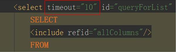 如果一些sql需要執(zhí)行超過(guò)defaultStatementTimeout可以通過(guò)Mapper文件單獨(dú)的sql的timeout進(jìn)行配置