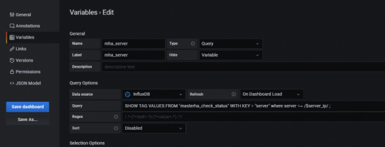 然后,再增加一個grafana變量--mha_server,注意,會依賴上面的變量server_ip。