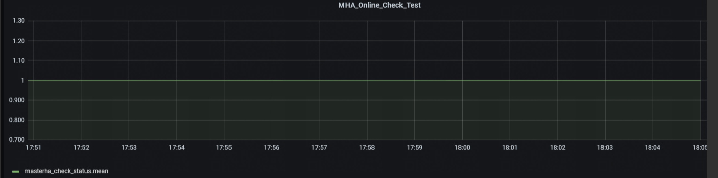MHA是運(yùn)行在Manager 節(jié)點(diǎn)上的,一個Manager 節(jié)點(diǎn)可以管理數(shù)十個集群。目前,我們的監(jiān)控體系是Telegraf + InfluxDB + Grafana,所以,需要在Manager 節(jié)點(diǎn)部署Telegraf,去收集MHA的運(yùn)行狀態(tài),保存到 InfluxDB。在既有的Grafana MySQL Dashboard中,添加一個關(guān)于 masterha_check_status 的panel 即可。