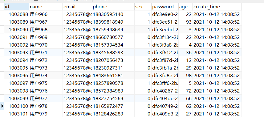 INSERT INTO `user` (`name`,email,phone,sex,password,age,create_time)