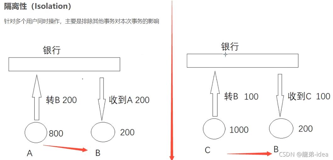 3.隔離性(Isolatlon)︰并發(fā)訪問數(shù)據(jù)庫時,一個用戶的事務(wù)不被其他事務(wù)所干擾,各并發(fā)事務(wù)之間數(shù)據(jù)庫是獨立的;
