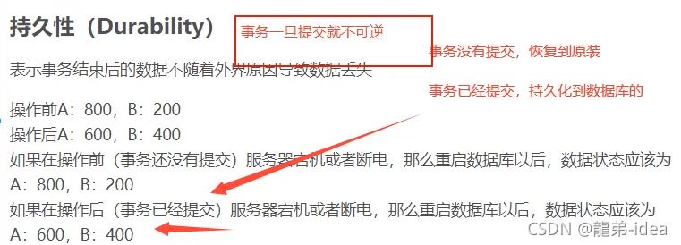 4.持久性(Durabllty) :一個事務(wù)被提交之后。它對數(shù)據(jù)庫中數(shù)據(jù)的改變是持久的,即使數(shù)據(jù)庫發(fā)生故障也不應(yīng)該對其有任何影響。 --------事務(wù)提交