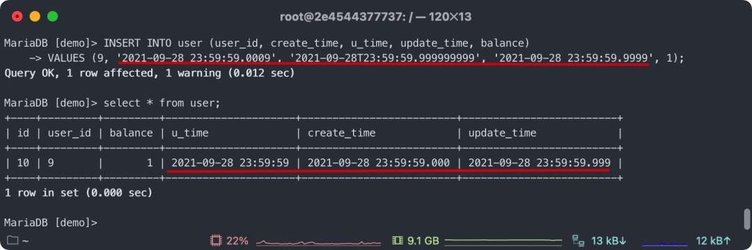 MariaDB 時(shí)間如果傳入的值超過精度范圍,會直接舍棄。