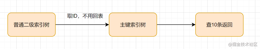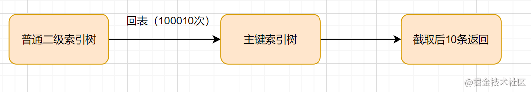 因?yàn)橐陨系腟QL,回表了100010次,實(shí)際上,我們只需要10條數(shù)據(jù),也就是我們只需要10次回表其實(shí)就夠了。因此,我們可以通過減少回表次數(shù)來優(yōu)化。