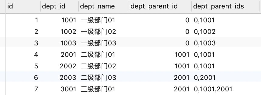- 可以因此通過比較字符串dept_parent_ids長度獲取當(dāng)前節(jié)點層級 ;