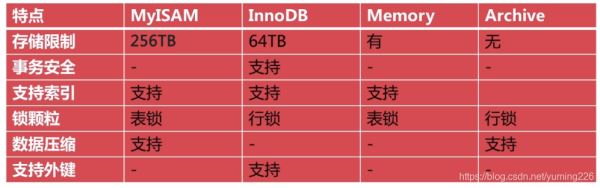 MyISAM:存儲限制可達256TB,支持索引、表級鎖定、數(shù)據(jù)壓縮。