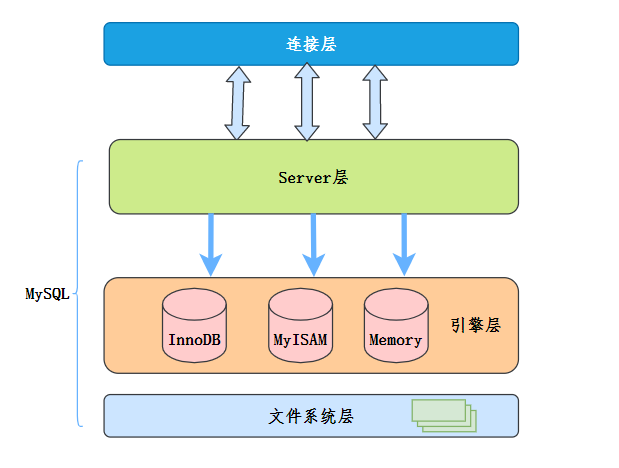 MySQL服務(wù)層負(fù)責(zé)SQL語法解析、生成執(zhí)行計劃等,并調(diào)用存儲引擎層去執(zhí)行數(shù)據(jù)的存儲和檢索。