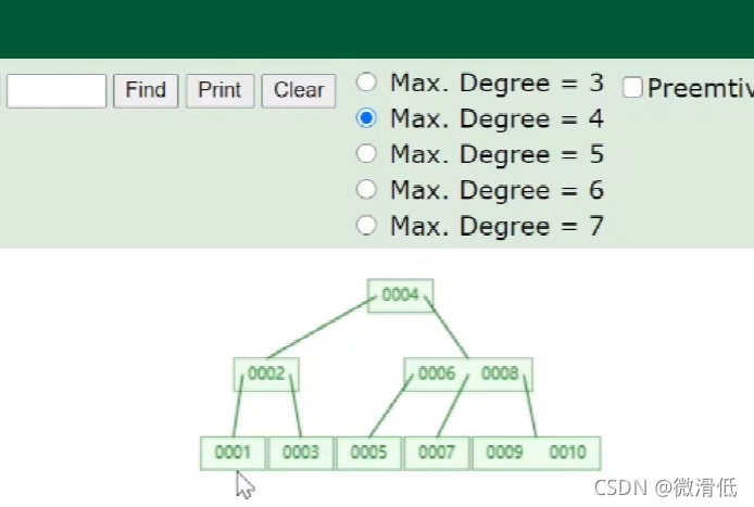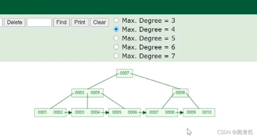 Degree為4表示的是一個(gè)節(jié)點(diǎn)存儲(chǔ)三個(gè)數(shù)據(jù)值,超過(guò)就要變換。那么實(shí)際的數(shù)據(jù)是怎么存儲(chǔ)的呢?我們需要Key和完整的數(shù)據(jù)行