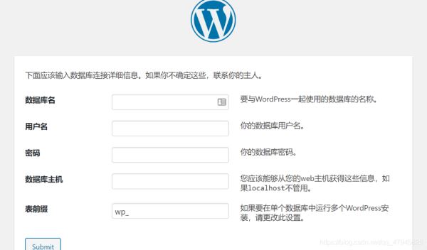 #數(shù)據(jù)庫權(quán)限 mysql> grant all on *.* to root@'192.168.136.219' identified by 'huawei@123'; Query OK, 0 rows affected, 1 warning (0.00 sec) mysql> flush privileges; Query OK, 0 rows affected (0.00 sec) #創(chuàng)建數(shù)據(jù)庫wordpress mysql> create database wordpress;