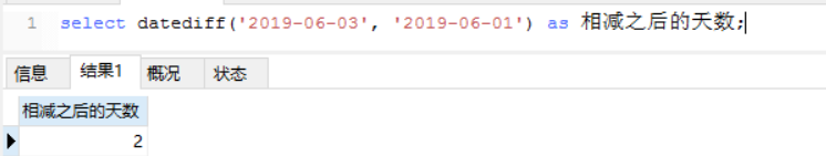 datediff(date1,date2):兩個(gè)日期相減,date1減去date2得到相減之后的天數(shù)