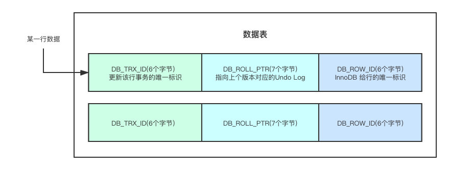 InnoDB 內(nèi)實現(xiàn) MVCC 的關(guān)鍵其實就是三個字段,并且數(shù)據(jù)表中每一行都有這三個字段: