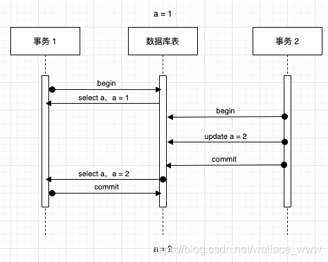 - 事務(wù) 1 又一次讀取 a,此時 a = 2