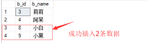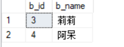 insert into b1(b_id,b_name) values(1,'莉莉') insert into b1(b_id,b_name) values(2,'阿呆')