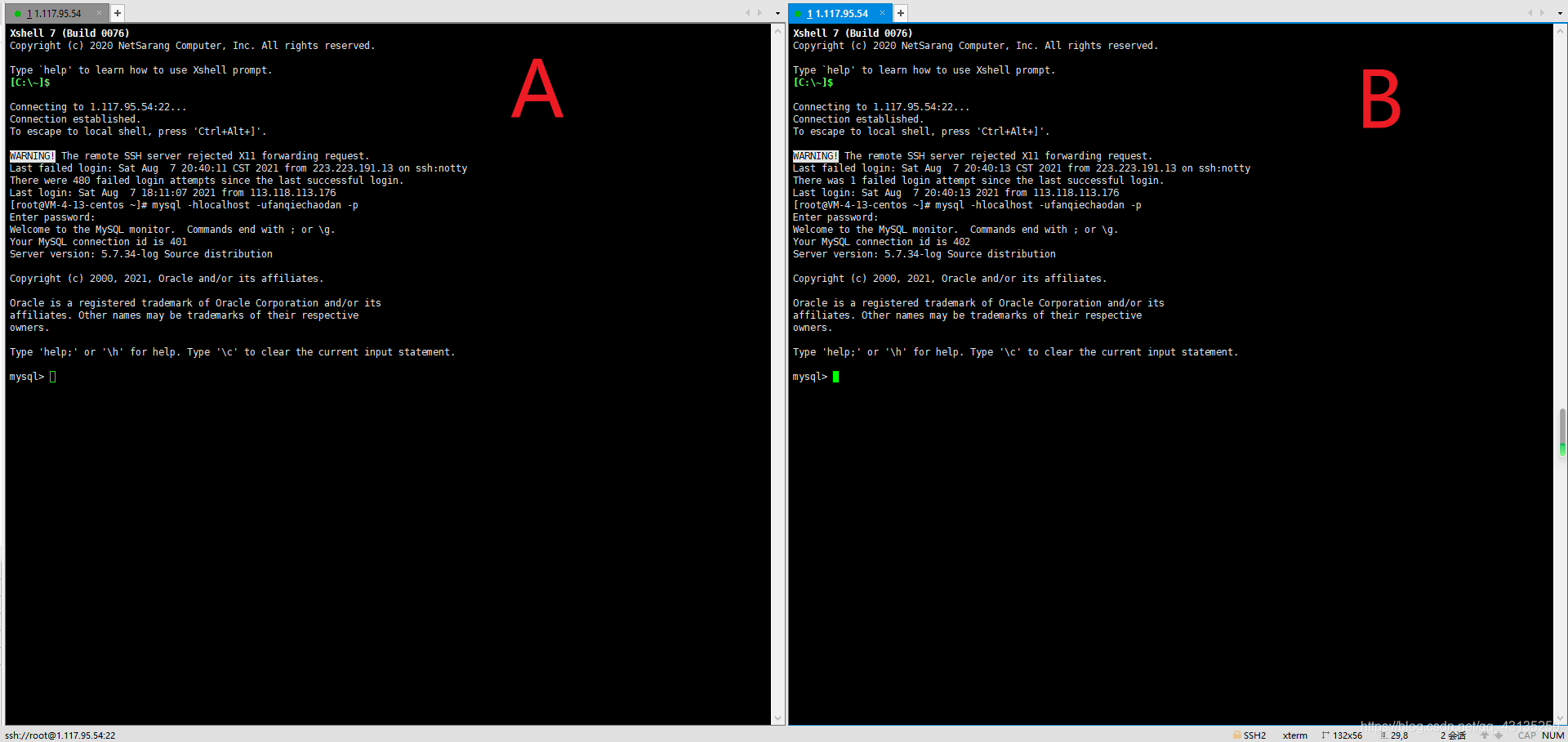 4.2 客戶端A和客戶端B各開啟一個事務(wù),