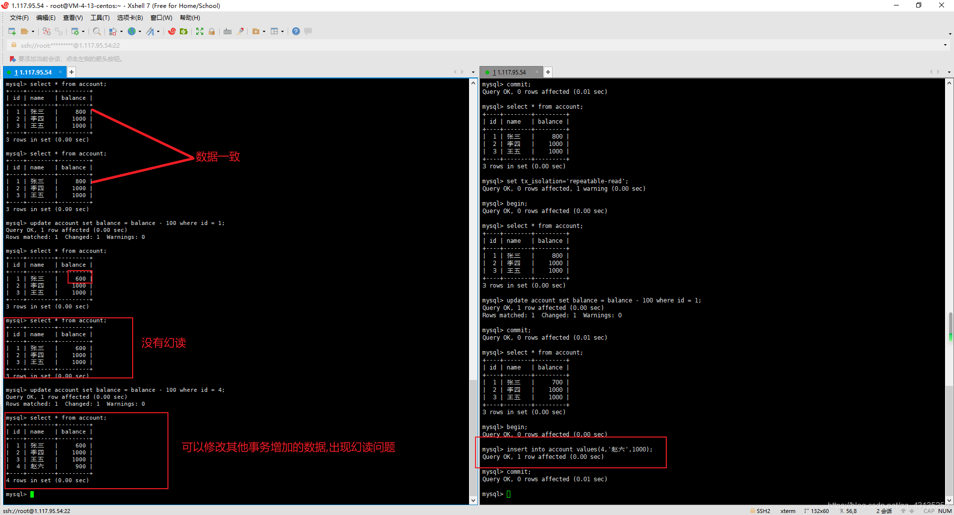 3.1 設(shè)置隔離級別可重復(fù)讀:set tx_isolation=‘repeatable-read';