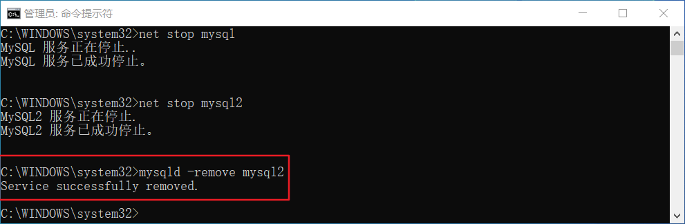 管理員CMD,輸入net stop mysql,我開(kāi)了兩個(gè)服務(wù),所以net stop mysql2