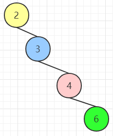 但是二叉樹可能會(huì)退化成鏈表的情況,如下圖所示,這樣就相當(dāng)于全部掃描了,導(dǎo)致效率不高,為了解決這個(gè)問題,需要確保二叉樹一直保持平衡,即平衡二叉樹。