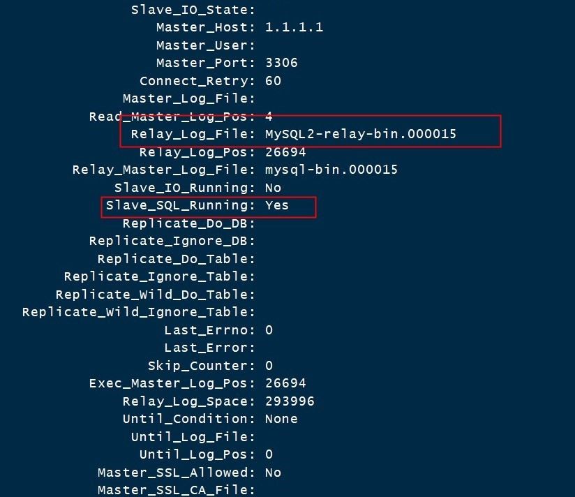 //將binlog重命名,relaylog文件名可在mysql實(shí)例中執(zhí)行show variables like '%relay%'查看. rename mysql-bin MySQL2-relay-bin mysql-bin* //將relay信息初始化到index文件中 ls ./MySQL2-relay-bin.0000*>MySQL2-relay-bin.index //將這些文件復(fù)制到data文件中 cp MySQL2-relay-bin.*/data/mysql/ //文件賦權(quán) chown -R mysql:mysql /data/mysql //啟動(dòng)mysql實(shí)例 systemctl start mysql //change master to一個(gè)不存在的實(shí)例,模擬此實(shí)例為一個(gè)備庫(kù),指定一個(gè)空的主庫(kù),創(chuàng)建SQL線程,然后根據(jù)備份記錄的binlogfile和binlogpos來(lái)設(shè)置。并啟動(dòng)slave的sql_thread CHANGE MASTER TO MASTER_HOST='1.1.1.1',RELAY_LOG_FILE='MySQL2-relay-bin.000011',RELAY_LOG_POS=160338; START SLAVE SQL_THREAD; show slave status\G